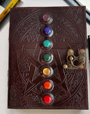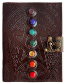 Leather Bound Journal - Vintage 7 Stone Journal with Lock - Book of Shadow Handmade Antique Deckle Edge Paper